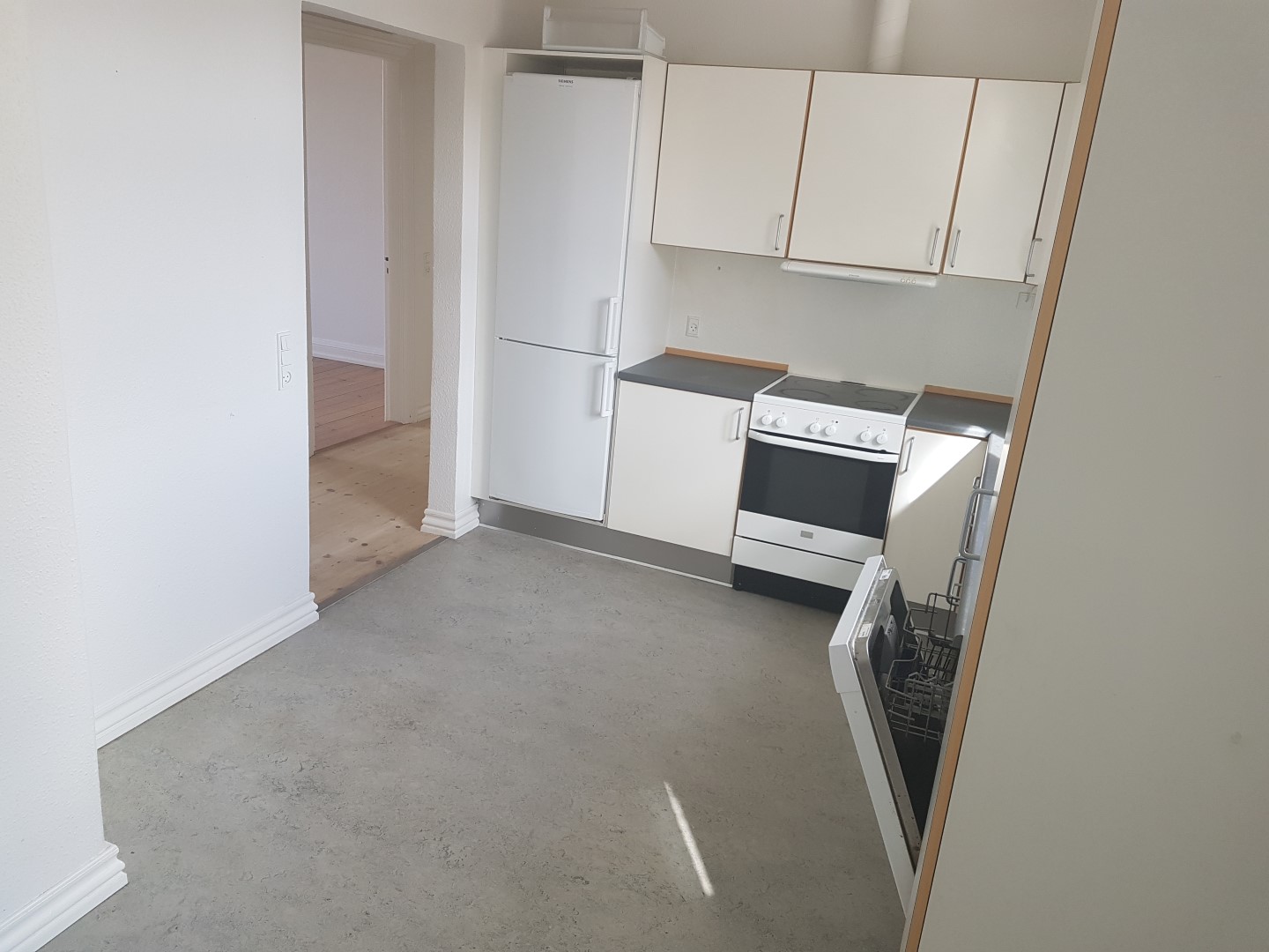 Lejligheden består af en entré, en stor, lys stue med stuk, køkken med alt i hvidevarer - blandt andet opvaskemaskine, bryggers med vaskemaskine og tørretumbler, to værelser samt stort, lyst badeværelse med separat bruseniche.